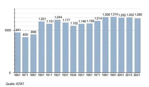 - ↑ Bilancio demografico e popolazione residente per sesso al 31 dicembre 2024. ISTAT. (Bevölkerungsstatistiken des Istituto Nazionale di Statistica, Stand 31. Dezember 2024).