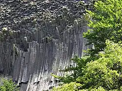 - Im Gebiet des östlichen Böhmischen Mittelgebirges (České středohoří) und bis zum Zittauer Gebirge sind in Dörfern und Kleinstädten vereinzelte Gebäude vorhanden, deren Sockelmauerwerk aus übereinandergelegten Basaltsäulen von annähernd gleicher Länge aufgebaut ist. Die Säulenköpfe bilden somit die Außenseite des Sockels, sofern er unverputzt ist. In manchen ländlichen Siedlungen haben sich auch einige wenige Gartenmauern in dieser Bauweise erhalten. Bemerkenswert ist dabei, dass sich Basaltsäulen nur unter sehr hohem Kraftaufwand quer spalten lassen.