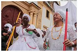 Die Festa do Bonfim ist eine der wichtigsten jährlichen Volksfeste in Salvador, die am zweiten Donnerstag nach dem Dreikönigstag beginnt und zehn Tage dauert. Das Fest stammt aus dem späten 18. Jahrhundert. An diesem Donnerstag versammeln sich die Gläubigen vor der Kirche Conceição da Praia in der Innenstadt von Salvador, darunter eine große Gruppe sogenannter Bahianas, das heißt Frauen in traditioneller weißer Tracht mit Turban und langem, rundem Rock. Nach der Messe nehmen die Gläubigen an einer Prozession teil, die die Kirche von Conceição da Praia verlässt und nach einem acht Kilometer langen Kurs den Hügel der Bonfim-Kirche erreicht.[6] Oben angekommen, reinigen die Bahianas die Stufen und den Platz vor der Kirche mit aromatisiertem Wasser, tanzen und singen Gesänge in der Yoruba-Sprache. Das Waschritual wird Lavagem do Bonfim („Waschung von Bonfim“) genannt und zieht eine Vielzahl von Gläubigen sowie Touristen an.[7] Das Fest bildet eine synkretistische Verbindung vom katholischen Ursprung zur Candomblé-Religion, in der Unser Herr von Bonfim mit Oxalá, dem Vater der Orishas und Schöpfer der Menschheit, in Verbindung gebracht wird.[8] Die katholische Kirche hatte nach Ende des Katholizismus als Staatsreligion das Waschen der Kirchenstufen wiederholt verboten.