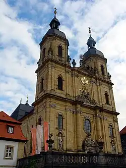 Nach dem Tod Lothar Franz von Schönborns 1729 und der Wahl seines Neffen Friedrich Carl von Schönborn wurde der Auftrag dem berühmten Balthasar Neumann (1687–1753) erteilt, dessen Plan auch ausgeführt wurde. Zuerst wurde unter seiner Leitung gearbeitet, später unter der Leitung von Johann Jakob Michael Küchel, welcher seit 1735 Neumanns Mitarbeiter im fürstbischöflichen Bauamt im Hochstift Bamberg war. Bei der Weihe der Kirche 1739, die im Beisein des Fürstbischofs stattfand, war der Bau noch lange nicht beendet. Selbst Hochaltar und Kanzel waren noch nicht vollendet, die übrigen Altäre nicht einmal begonnen.[11]