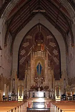 In der Chorempore befinden sich acht verschiedene Marienheiligtümer: Schwarze Madonna von Tschenstochau, Unsere Liebe Frau von Knock, Unsere Liebe Frau von Einsiedeln, Unsere Liebe Frau vom Schnee, Unsere Liebe Frau von La Salette, Unsere Liebe Frau von Guadalupe, Unsere Liebe Frau von Lourdes und Unsere Liebe Frau von Fatima. Diese Ausstellung zeigt die Universalität der katholischen Kirche auf, indem betont wird, dass der Marienkult, obwohl diese Schreine für ein bestimmtes Land oder eine bestimmte Kultur spezifisch sind, all diese Barrieren überbrückt und die verschiedenen in Sauganash lebenden ethnischen Gruppen zusammenbringt.