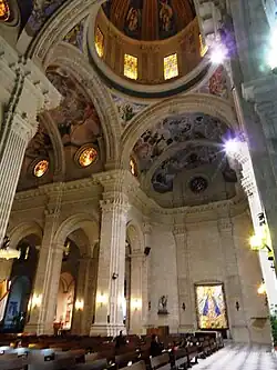 Die Tonnengewölbe über dem Haupt- und Querschiff einschließlich der Apsis sind figürlich ausgemalt, ein bemerkenswertes Werk von Manuel Muñoz Barberán. Das Mittelschiff und das Querschiff werden durch große offene Oculi in den Lünetten des Gewölbes beleuchtet, die Apsis durch drei Oculi. In den Seitenschiffen, auf den Bögen des Zugangs zu den Kapellen, öffnen sich rechteckige Fenster. Die Innenseite der Kuppel wurde durch Rafael Rosés de Rivadavia gestaltet. Es gibt auch eine Fülle von Bildern, vor allem die Pasos der Karwoche, die in den berühmten lokalen Prozessionen vorgeführt werden und zu deren Autoren José Lozano Roca, Miguel Torregrosa und Francisco Salzillo gehören.