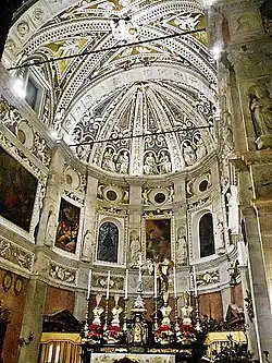 Der Innenraum – weitgehend im Stil des Barock – weist eine erhebliche Anzahl an Gemälden, Skulpturen, Stuckelementen und anderen Dekorationsgegenständen auf. Jeder verfügbare Raum in der Basilika scheint gefüllt zu sein. Der Hauptaltar im barocken Stil wurde 1748 mit Intarsien versehen.