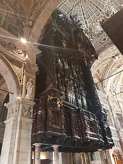 Die den Kirchenraum sehr dominierende, mit einem reich geschnitzten Holzkorpus versehene, und aufgeständerte Orgel wurde 1608 von Giuseppe Bulgarini (1608–1617) aus Brescia begonnen und 1638 von G. Battista Salmoiraghi (1638–1650) aus Mailand fertiggestellt.