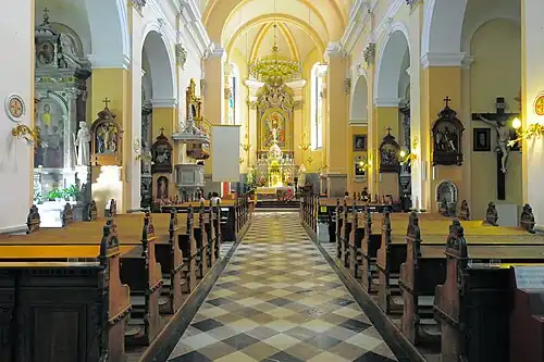 Auch der Innenraum der Basilika orientiert sich an der Renaissance, so findet sich über dem Hochaltar ein Mosaik von St. Veit. Sämtliche Altäre der Kirche wurden von slowenischen Handwerkern gefertigt.