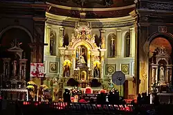 Die große Flachkuppel über der Vierung hat ein sehr großes Deckengemälde mit einer Fläche von 280 Quadratmetern und mehr als 150 Figuren, die Heilige, Geistliche und Laien darstellen.