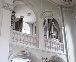 In der Basilika St. Johann befindet sich eine dreiteilige Orgelanlage mit 61 Registern und 4.138 Pfeifen.[34][35] Das Instrument ist nach der Orgel der Christkönig-Kirche in Saarbrücken-St. Arnual (68 Register) die zweitgrößte Orgel im Saarland.