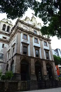 Das Kloster war das erste der Benediktinerkongregation von Brasilien und stammt aus dem 16. Jahrhundert. Es liegt im Zuständigkeitsbereich der Pfarrei São Pedro. Der ursprüngliche Bau aus dem 16. Jahrhundert wurde Ende des 17. Jahrhunderts durch eine einschiffige Kirche des Architekten Macário de São João ersetzt, inspiriert durch die Kirche Il Gesu in Rom.[2] Die 1582 begonnenen Bauarbeiten dauerten bis in den Anfang des 20. Jahrhunderts an, als die Gewölbe und die Vierungskuppel nach den ursprünglichen Plänen abgeschlossen wurden. Der durch den Gouverneur José Joaquim Seabra 1912 geplante Abriss für seine Stadtmodernisierung konnte abgewendet werden, ein Klosterflügel ging für den Straßenbau verloren. Die Kirche wurde 1938 vom Nationalen Institut für Historisches und Künstlerisches Erbe als historisches Bauwerk unter Denkmalschutz gestellt.[3] Papst Johannes Paul II. erhob sie 1982 zur Basilika minor. Sie ist Teil des 1985 zum UNESCO-Weltkulturerbe erklärten historischen Zentrums der Stadt Salvador.[4] 2006 wurde sie bei einem Umbau fast ein Jahr geschlossen.