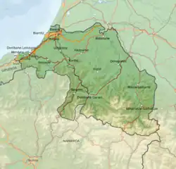 - Nieder-Navarra (frz. Basse-Navarre, baskisch Nafarroa Beherea, im örtlichen Dialekt Benafarroa oder Benabarra)