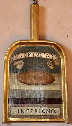 - Eintrag in der Mitgliederliste der Crusca mit zwei Abbildungen