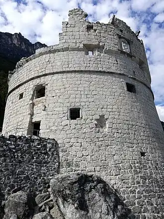 Die Anlage, die neben dem charakteristischen Rondell noch aus mehreren anderen Baukörpern bestand, die zum Großteil nicht mehr erhalten sind, wurde innerhalb kürzester Zeit fertiggestellt. Bereits im Mai 1509 fiel der Bau nach der Schlacht von Agnadello und dem dadurch bedingten Rückzug der Venezianer aus dem heutigen Trentino in die Hände des Fürstbischofs von Trient Georg III. von Neideck.[1]
