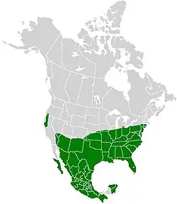 Die Art kommt vorzugsweise in den südlichen Bundesstaaten der USA vor, wandert aber über fast ganz Nordamerika, vom Süden Kanadas bis nach Mittelamerika. Guatemala bildet hierbei die südlichste Verbreitungsgrenze der Art.[4] Je südlicher das Verbreitungsgebiet und je wärmer das Klima, desto häufiger ist sie anzutreffen.