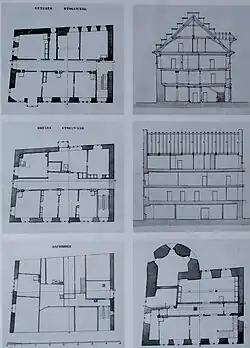 Aus dem Jahr 1856 sind Pläne und Grundrisse erhalten. Der Eingang auf der Nordseite führte in eine geräumige Halle. In allen Geschossen lagen in der Mitte Korridore in der Ost-West-Achse. Das Ravelin war im Erdgeschoss und im ersten Obergeschoss durch einen Gang erreichbar. Im ersten Obergeschoss lag auf der Nordseite die Schreibstube mit dem Erker. Daneben werden ein «oberes Stübli», eine «Wohnstube», eine «Seestube», einen «Saal» und mehrere Kammern genannt. 1705 wird eine «obere Küche» genannt; also wird es auch eine untere gegeben haben.
