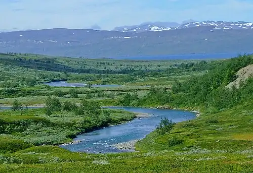 Baumgrenze aus Fjällbirken im nordschwedischen Nationalpark Padjelanta
