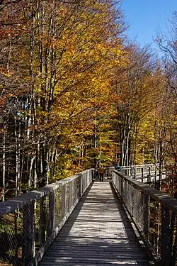 Der Baumwipfelpfad führt durch den Bergmischwald auf dem Grünberg. Auf dem Weg gibt es zahlreiche Informationstafeln, die Informationen zur Umgebung enthalten.[1]