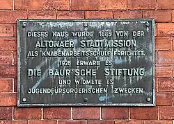 1870 eröffnete die Baur’sche Stiftung ein sogenanntes Rettungshaus in der Catharinenstraße, das sich an den von Hinrich Wichern konzipierten Erziehungsheimen orientierte. Zuletzt gab es eine Einrichtung in Bahrenfeld am heutigen Osdorfer Weg.