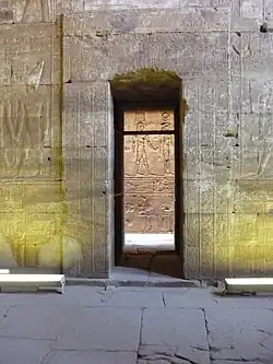 - ↑ D. Arnold: Lexikon der ägyptischen Baukunst. Zürich 1994, S. 267; H. Brunner: Artikel Tür und Tor. In: W. Helck, W. Westendorf: Lexikon der Ägyptologie. Band VI, S. 778–787; O. Koenigsberger: Die Konstruktion der ägyptischen Tür. Glückstadt 1936.