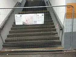 - Klammern aus Stahlblech, die jeweils zweier Elemente verbinden (z. B. durch Verschraubung mit einer M10-Mutter), um das Öffnen des Zauns durch Ausheben von Zaunelementen zu erschweren