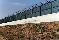 Eine besonders stabile Bauzaunvariante wurde in den 80er-Jahren um die atomare Wiederaufarbeitungsanlage Wackersdorf errichtet.
