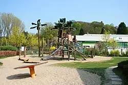 Im Außenbereich befinden sich zwei Beachvolleyballfelder, ein Hartplatz, eine Kletterwand und ein Abenteuerspielplatz.[1]