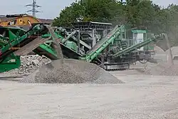 - Brechen und Sieben des Bauschutts.