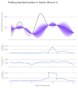 Mit Kenntnis der durch das Surrogatmodell geschätzten bedingten Wahrscheinlichkeitsdichte kann die Akquisitionsfunktion iterativ optimiert werden. Der nächste zu überprüfenden Punkt ist (wenn die Akquisitionsfunktion maximiert werden soll). Die argmax-Funktion kann näherungsweise für eine endliche Menge an zufälligen Punkten ausgewertet werden. Die Näherung an argmax ist dann der x-Wert, welcher den größten Wert der Akquisitionsfunktion hat.