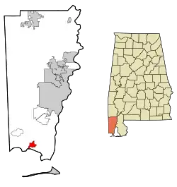 Nahegelegene Orte sind unter anderem Coden (1 km südlich), Grand Bay (3 km nordwestlich), Irvington (6 km nördlich), Theodore (13 km nordöstlich) und Bellefontaine (14 km nordöstlich). Die nächste größere Stadt ist mit 195.000 Einwohnern das etwa 20 Kilometer nordöstlich entfernt gelegene Mobile.