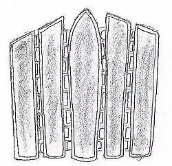 - ↑ George Cameron Stone, Donald J. LaRocca: A Glossary of the Construction, Decoration and Use of Arms and Armor: in All Countries and in All Times. Verlag Courier Dover Publications, 1999, ISBN 978-0-486-40726-5 (Reprint), Seite 46 f, Seite 46 bei Photobucket.