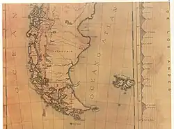 In dieser Landkarte erscheinen alle Inseln südlich der Großinsel Feuerland als chilenisches Gebiet.
