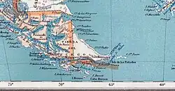 Auszug aus dem Nuevo Mapa de la República Argentina von 1914, erstellt von Pablo Ludwig. Picton und Nueva erscheinen unter argentinischer, Lennox unter chilenischer Hoheit. Die gesamte Karte kann unter Nuevo mapa de la República Argentina (1914) eingesehen werden.