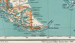 Die hier teilweise wiedergegebene Karte wurde 1889 in Buenos Aires von J. Declout erstellt und von E. Nolte herausgegeben.