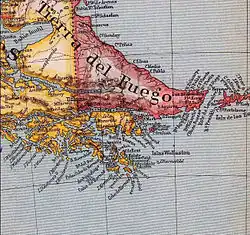 An der Südspitze Amerikas verläuft die Grenze durch die Mitte des Beagle-Kanals und reicht bis zur Staaten-Insel. Alle Inseln südlich von Feuerland gehören wie schon in der Latzina-Karte von 1882 (s. o.) zu Chile.