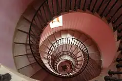 Unten am Turm befindet sich ein Gebäude im Italianate-Stil. Im Erdgeschoss befand sich der Scarlet-Salon und ein Vestibül mit einem Anbau, der die Küche und die Büros beherbergte. Im Obergeschoss befand sich der Crimson-Salon, das Heiligtum und die Bibliothek.[9]