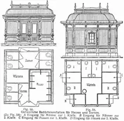 - ↑ Peter Payer: Unentbehrliche Requisiten der Großstadt. Eine Kulturgeschichte der öffentlichen Bedürfnisanstalten von Wien. Wien: Löcker Verlag 2006, S. 71f.