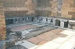 Die öffentlichen Bedürfnisanstalten der Römer zeichneten sich nicht selten durch großen Komfort aus und waren teilweise luxuriös ausgestattet. In den latrina oder auch forica genannten Örtlichkeiten fand man Marmorsitze und sie waren meist ans Wassernetz angeschlossen. Eine Benutzung war gegen Entgelt möglich. Zur Regierungszeit von Kaiser Diokletian (284–305 n. Chr.) gab es 150 öffentliche Bedürfnisanstalten in der Stadt Rom. Viele waren direkt Badehäusern angeschlossen und zur Spülung wurde das gebrauchte Wasser der Bäder genutzt. Zur Reinigung diente der Xylospongium, ein Holzstab an dem Blätter und vor allem Schwämme befestigt waren. Er wurde wie unsere heutigen Klobürsten eingesetzt und diente zur Reinigung der Bedürfnisanstalten und der einzelnen Toilettensitze und -vertiefungen. Ein bekanntes Beispiel für solch eine Einrichtung ist die Cloaca Maxima.