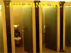 In zahlreichen Bedürfnisanstalten sind, insbesondere bei den Einzelkabinen, sogenannte Klosprüche oder sonstige Graffiti auf den Wänden zu finden.