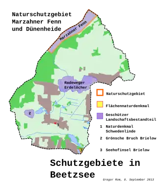 - ↑ Teilblatt Nordwest Schutzgebiete. (PDF) In: Landkreis Potsdam-Mittelmark Landschaftsrahmenplan. Büro für Umwelt- und Landschaftsplanung, archiviert vom (nicht mehr online verfügbar) am 7. August 2011; abgerufen am 16. Oktober 2013.