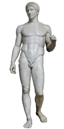 - in der Kunsttheorie war der Kanon des Polyklet eine Proportionslehre; wahrscheinlich bezeichnete kanṓn auch eine Statue, die diese Proportionen modellhaft veranschaulichte (den Doryphoros);
