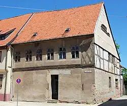 Das zweigeschossige Gebäude wurde in Fachwerkbauweise errichtet und war zum Teil verputzt. Das Fachwerk zeigt ein Bauerntanzmotiv. Im 19. und 20. Jahrhundert erfolgten größere bauliche Veränderungen. An der Schwelle befindet sich eine auf den Stadtbrand beziehende Inschrift: