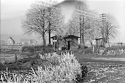 1938 wurde das Lager Pfaffenwald als „Reichsautobahnlager“ für die Unterbringung von beim Bau der Asbachtalbrücke beschäftigten Zwangsarbeitern im Pfaffenwald westlich von Beiershausen eingerichtet. Von 1942 bis zum Frühjahr 1945 wurde es dann als Durchgangs-, Sterbe-, Geburten- und Abtreibungslager für ausländische Zwangsarbeiter und Zwangsarbeiterinnen genutzt. Die im Lager Verstorbenen wurden von den Lagerinsassen selbst auf einem provisorischen Friedhof im Interessentenwald in den Rothäckern[8] bestattet.[9] 1958/59 legten dann Soldaten der Bundeswehr einen Waldfriedhof (⊙) an,[10] der 1960/61 von der Hessischen Landesregierung und dem Volksbund Deutsche Kriegsgräberfürsorge vollendet und am 14. Mai 1961 der Öffentlichkeit zugänglich gemacht wurde.[11][12]