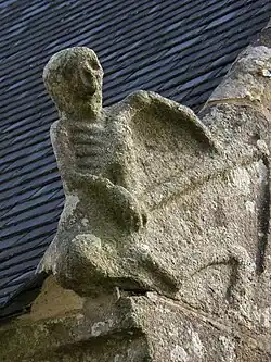Am südlichen Giebel ist der Tod als Sensenmann dargestellt, am nördlichen Giebel die Auferstehung.