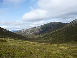 | Blick aus dem Glen Ey in Richtung Süden zum Beinn Iutharn Mhòr | ||