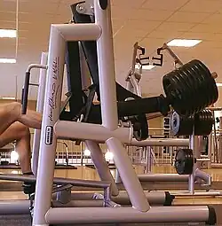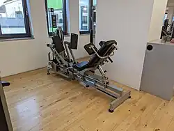 Die infimetrische Beinpresse kommt ohne Gewichtsblöcke aus. Stattdessen wird der Widerstand durch den Trainierenden selbst erzeugt.[1]
