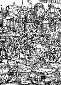 Mit der Erfindung des Spreng- und Schießpulvers und von Kanonen (siehe auch Steinbüchse) ergaben sich neue Möglichkeiten für beide Seiten.