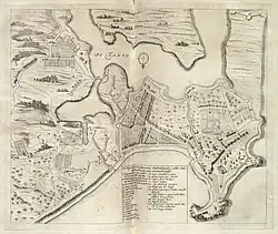Aus dem hölzernen Fort wurde eine befestigte Stadt mit sechseckiger Ummauerung und einem Dutzend Bastionen. Der Gesamtumfang betrug 1300 Schritt. Beiderseits der Mauern befanden sich Gräben, die mit einem See verbunden waren, der die Stadt um ein Drittel von der Landfläche abschirmte. Die Artillerie bestand aus 237 Geschützen, von 10- bis zu 38-Pfündern. Die Festung lag an einer großen Bucht, die Platz für zahlreiche kleine Schiffe bot und zur Nordseite zum Meer offen war. Innerhalb der Festung lebten in den 1650er Jahren 900 Familien adliger Siedler und 1500 Handwerker und Händler. Die Siedlung hatte zwei Kirchen, die Pfarrkirche und São Lourenço, und Konvente der Dominikaner, der Augustiner, der Kapuziner und der Jesuiten. Außerdem lagen innerhalb der Mauern das Armenhaus Santa Misericórdia und das königliche Hospital.[2]