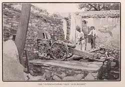 Der britische Botschafter Sir Claude MacDonald wurde zum Leiter der Verteidigung ernannt und ein amerikanischer Diplomat wurde sein Stabschef. Die Wachmannschaften der einzelnen Staaten agierten jedoch unabhängig und MacDonald konnte nur Anregungen für gemeinsame Aktionen geben.[9] Die Soldaten waren schlecht ausgerüstet. Nur die amerikanischen Marines verfügten über ausreichend Munition. Es waren drei Maschinengewehre vorhanden. Die Italiener hatten eine kleine Kanone. Es war ein Glücksfall, ein altes, schweres Kanonenrohr und ausreichend Munition dafür im Gesandtschaftsviertel zu finden; so konnte ein funktionierendes Geschütz zusammengesetzt werden. Die Amerikaner nannten es „Betsy“; alle anderen „the International“.[10]