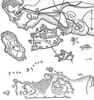 Die Festung wurde 1585 von den Schweden auf einer Insel am linken Ufer im Fluss Vuoksa erbaut. Die Festung besitzt mehrere kleine Bastionen und ist ähnlich einer Redoute aufgebaut. Die Hauptverteidigungsanlagen zeigen Richtung Süden.