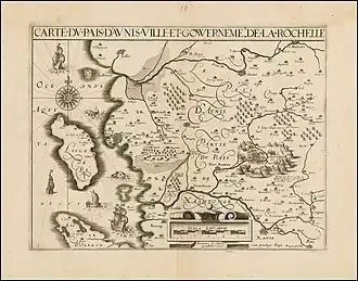 Benjamin de Rohan begab sich in das protestantische England, um dort militärische Hilfe zu erbitten. Er nahm Kontakt zum Duke of Buckingham George Villiers auf, der mit dem englischen König Karl I. befreundet war. Villiers ließ eine Flotte mit 5000 Soldaten bemannen und begab sich mit Benjamin nach La Rochelle. Als sie am 25. Juli 1627 vor der Stadt eintrafen, entschied sich Villiers zunächst für einen Angriff auf die Île de Ré, die bereits von königlichen Truppen besetzt worden war.[2][1] Die englischen Soldaten gingen im Osten der Insel an Land und schlugen einen Angriff der Franzosen zurück, die sich daraufhin in das Fort de la Prée in La Flotte und Saint-Martin-de-Ré zurückzogen. Villiers ließ das Fort belagern, während unter den Bewohnern von La Rochelle Uneinigkeit darüber herrschte, wie man sich gegenüber den Engländern verhalten solle.[3][4][5]