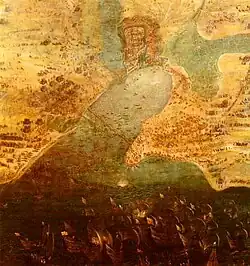 Während des Winters ließ Ludwig XIII. weitere Verbände heranziehen, bis das Belagerungsheer im Januar 1628 über 30.000 Soldaten umfasste. Obwohl seit Beginn der Belagerung bereits mehrere Monate vergangen waren, verfügten die Verteidiger von La Rochelle über ausreichend Nahrung und Munition, da sie über den Seeweg von englischen Schiffen mit Nachschub versorgt wurden. Die Belagerer begannen deshalb in der Bucht von La Rochelle mit dem Bau eines Deiches,[4][2][5] mit dem die Stadt vollständig von der Außenwelt abgeschnitten werden sollte. Auf dem Deich wurden Kanonen postiert, die man gegen die feindlichen Schiffe einsetzte.[1] Von einem Überläufer erfuhr man, dass ein unbewachter Zugang in die Stadt führe. Kardinal Richelieu brach in der Nacht auf den 13. März mit 5.000 Soldaten auf, um La Rochelle auf diesem Wege zu erstürmen. Seine Kundschafter verirrten sich jedoch in der Sumpflandschaft nördlich der Stadt und entdeckten erst am Morgen den ungeschützten Zugang. Die Hugenotten wurden durch die Präsenz zahlreicher Gegner alarmiert und schlossen die Lücke in ihren Befestigungsanlagen.[6]