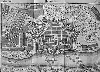 Die Belagerung von Pernau war eine militärische Intervention im Großen Nordischen Krieg. Sie begann am 22. Juli und endete am 15. August 1710 mit der Kapitulation der schwedischen Garnison. Diese war durch die Einwirkung der Pest von 1000 Mann auf 120 Mann geschrumpft. Des Weiteren gab es keine Aussicht auf Entsatz oder Entlastungsangriffe durch die schwedische Armee, so dass sich die Garnison ergab.